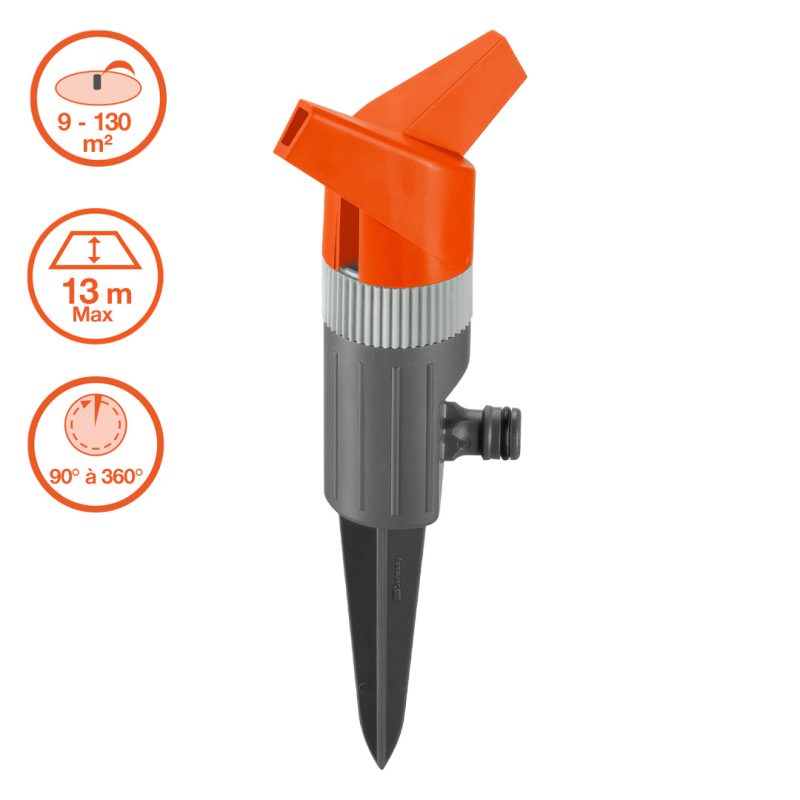 • Secteur d'arrosage : De 90° à 360°, réglages sectoriels en 7 étapes par pas de 45