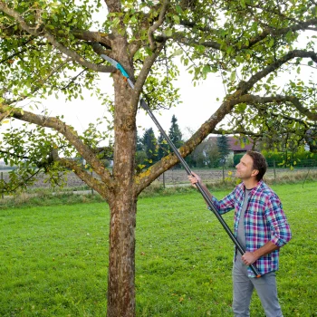 Jusqu’à 5 m de haut. Un produit – plusieurs applications: utilisez la scie combisystem sans manche pour une utilisation à proximité et avec un manche télescopique pour une utilisation en hauteur.